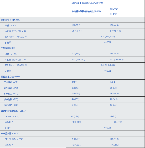 表 1 研究关键有效性结果总结(ITT集)[1]*NR为未达到。